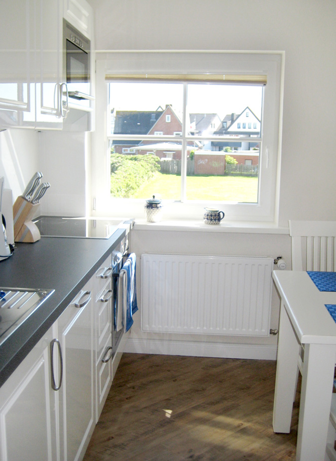 Eine schön aufgeteilte, 58m² große Ferienwohnung im 1. OG mit einem gemütlichen Wohnraum, einer komplett eingerichteten Küche samt Esstisch, 2 Schlafräumen sowie einem Duschbad mit WC. Im Preis enthalten sind Bettwäsche, Handtücher inkl. Strandtücher, WLAN sowie 4 e-Ladestationen direkt am Haus.