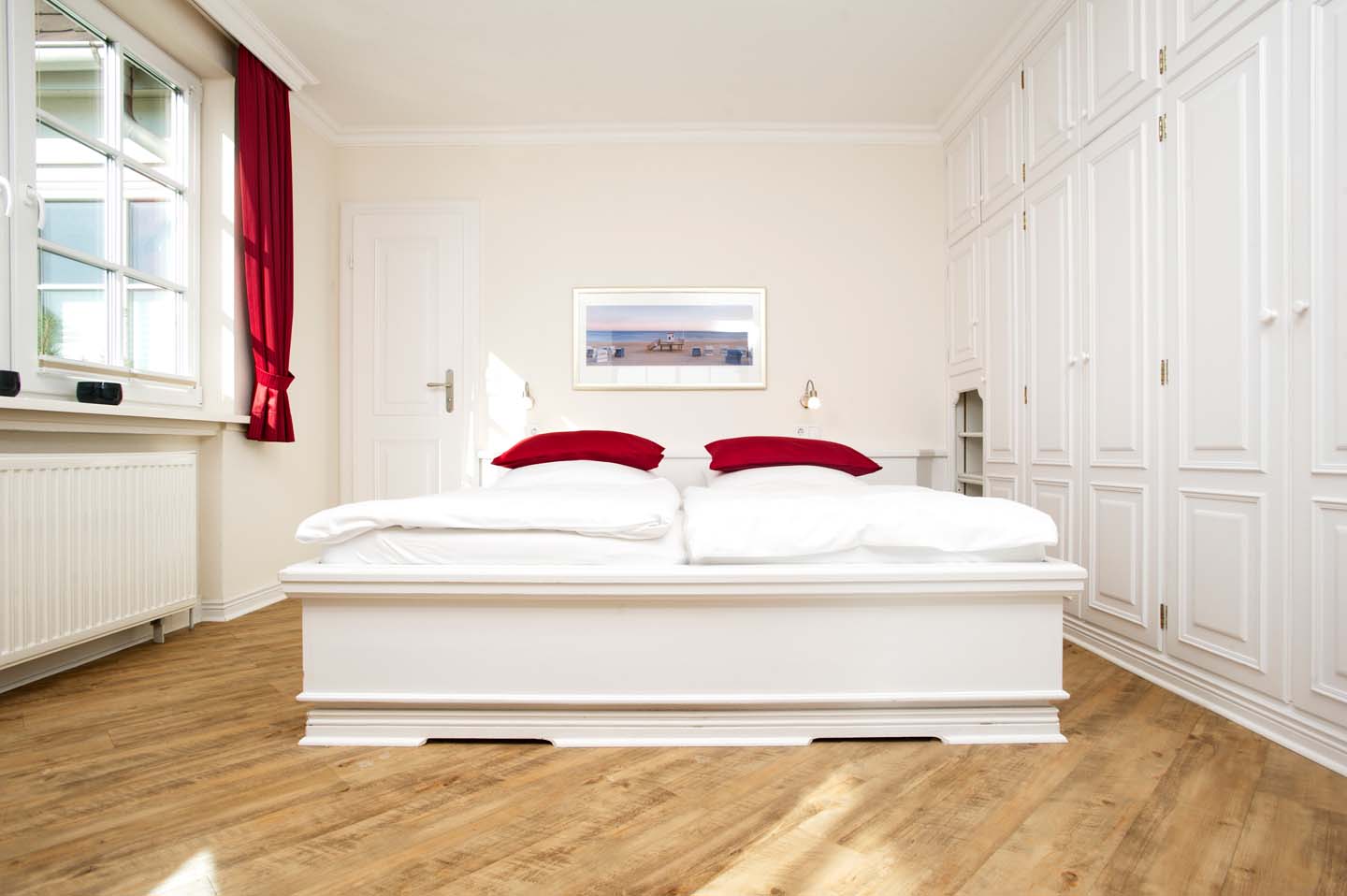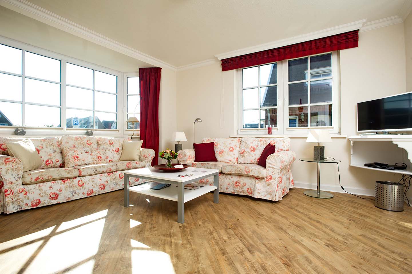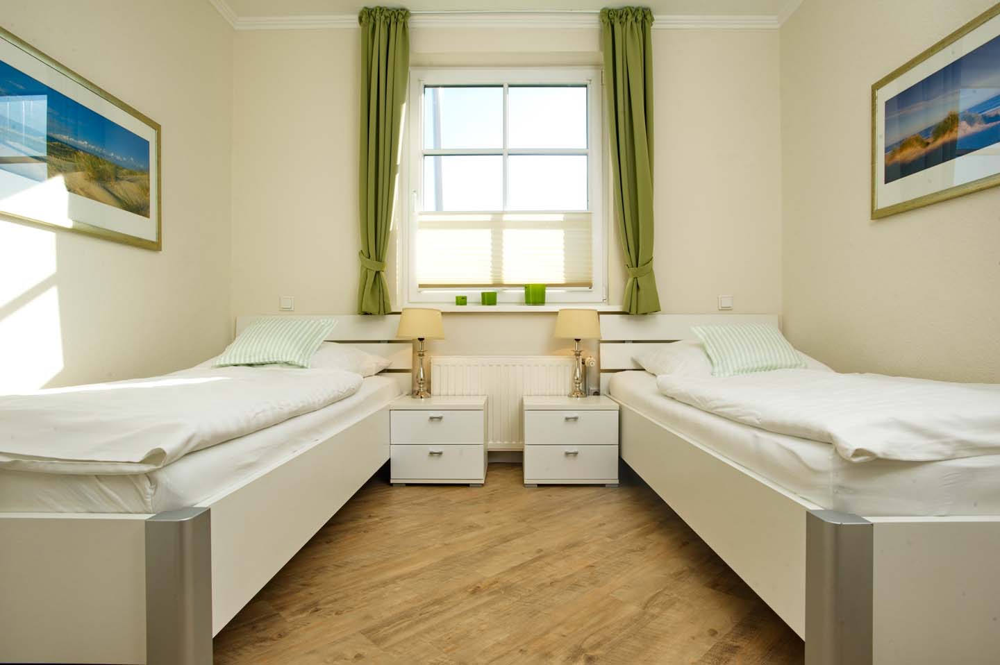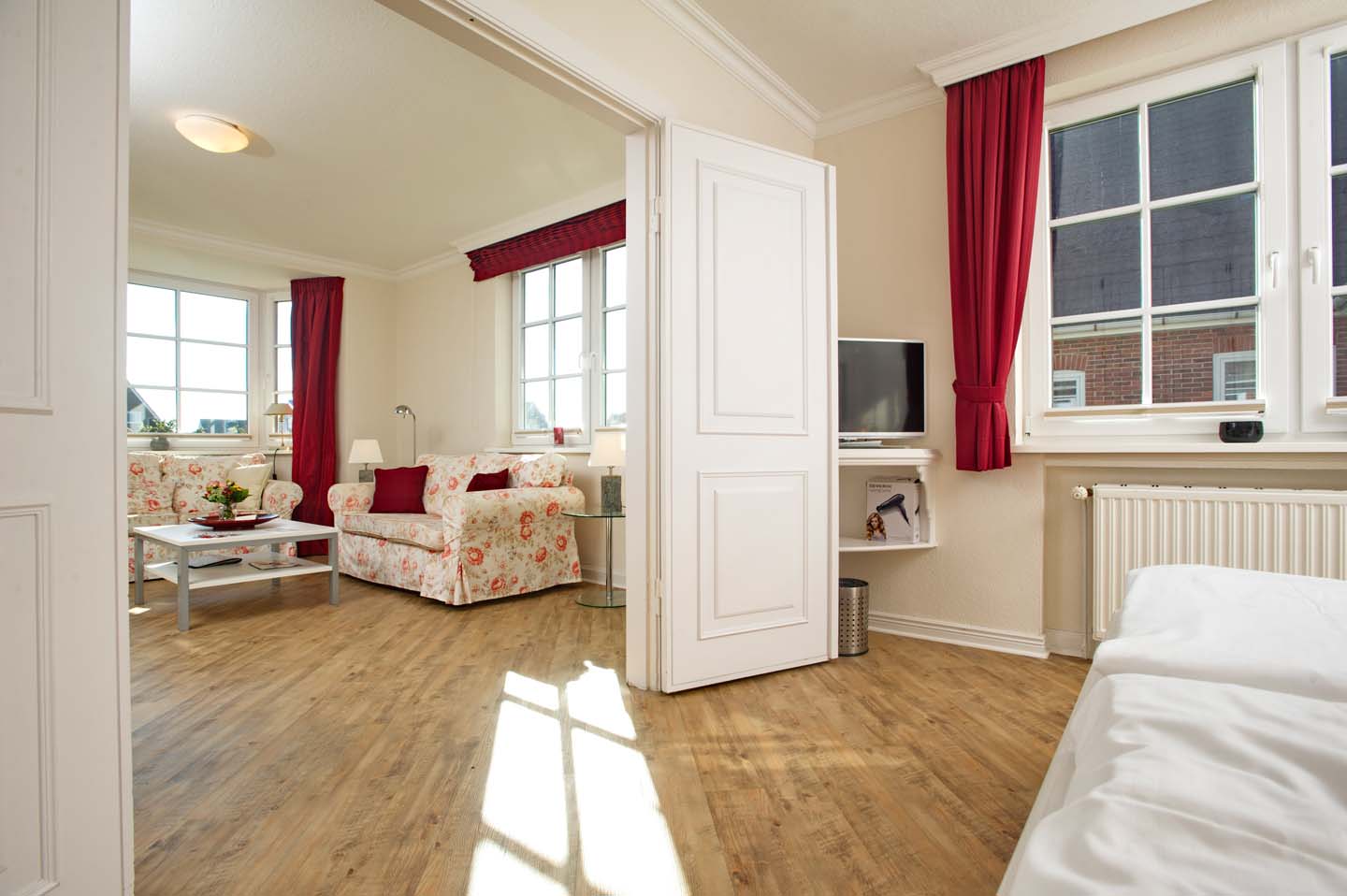 Eine helle und großzügige Ferienwohnung mit 70m². Das Appartement im Erdgeschoss bietet ein großes Wohnzimmer, eine separate Landhausküche samt Esstisch, 2 Schlafräume (1 x Doppelbett, 1 x 2 Einzelbetten) ein Duschbad mit WC sowie ein Gäste-WC. Im Preis enthalten sind Bettwäsche, Handtücher inkl. Strandtücher, WLAN sowie 4 e-Ladestationen direkt am Haus.