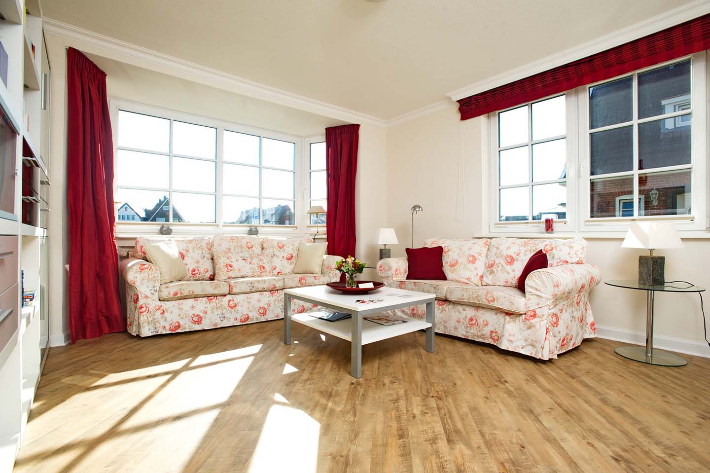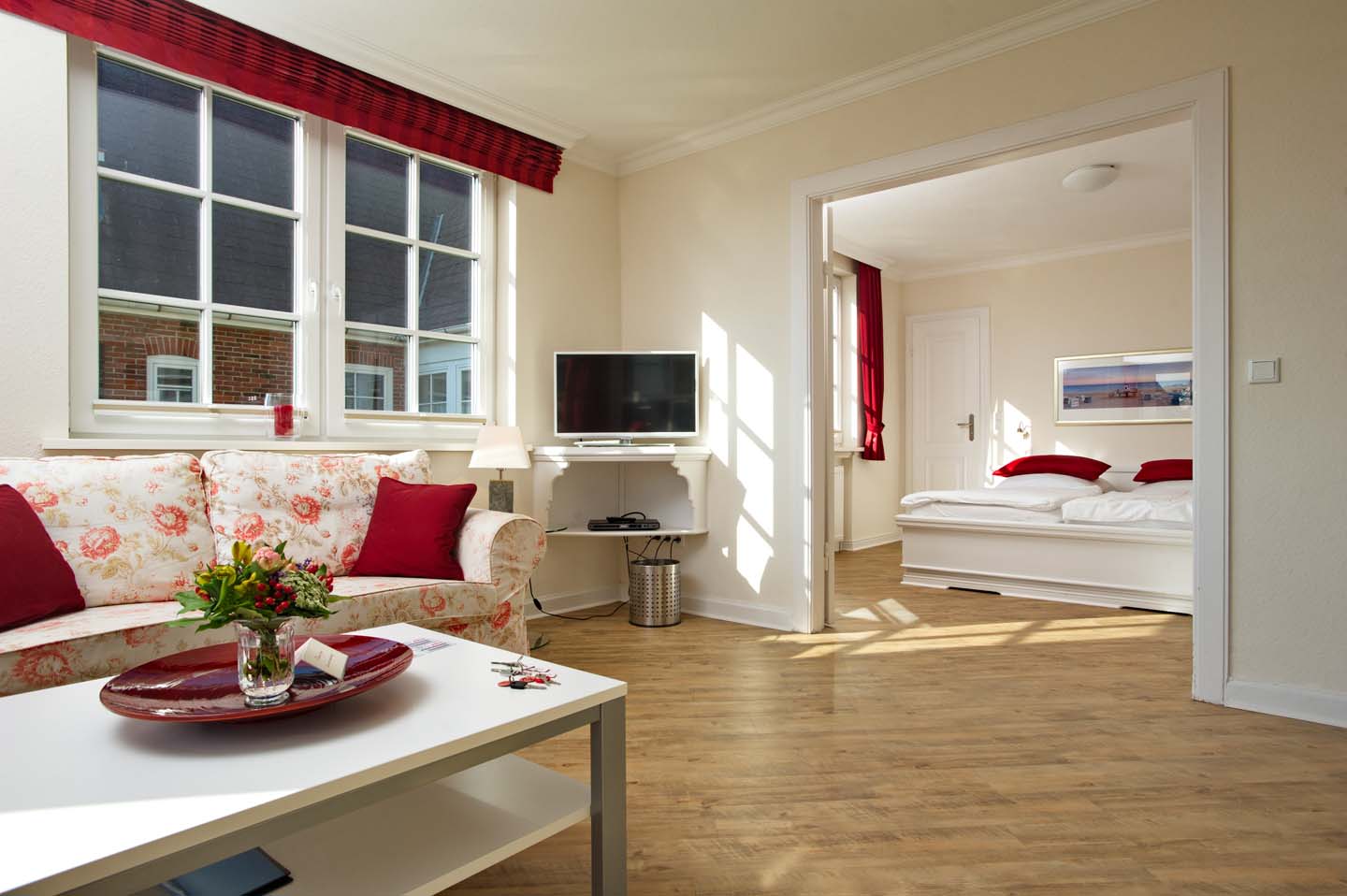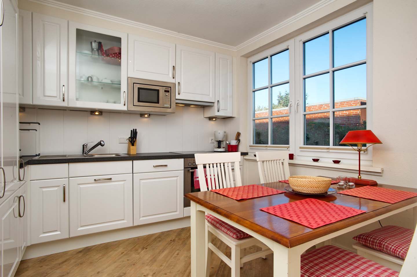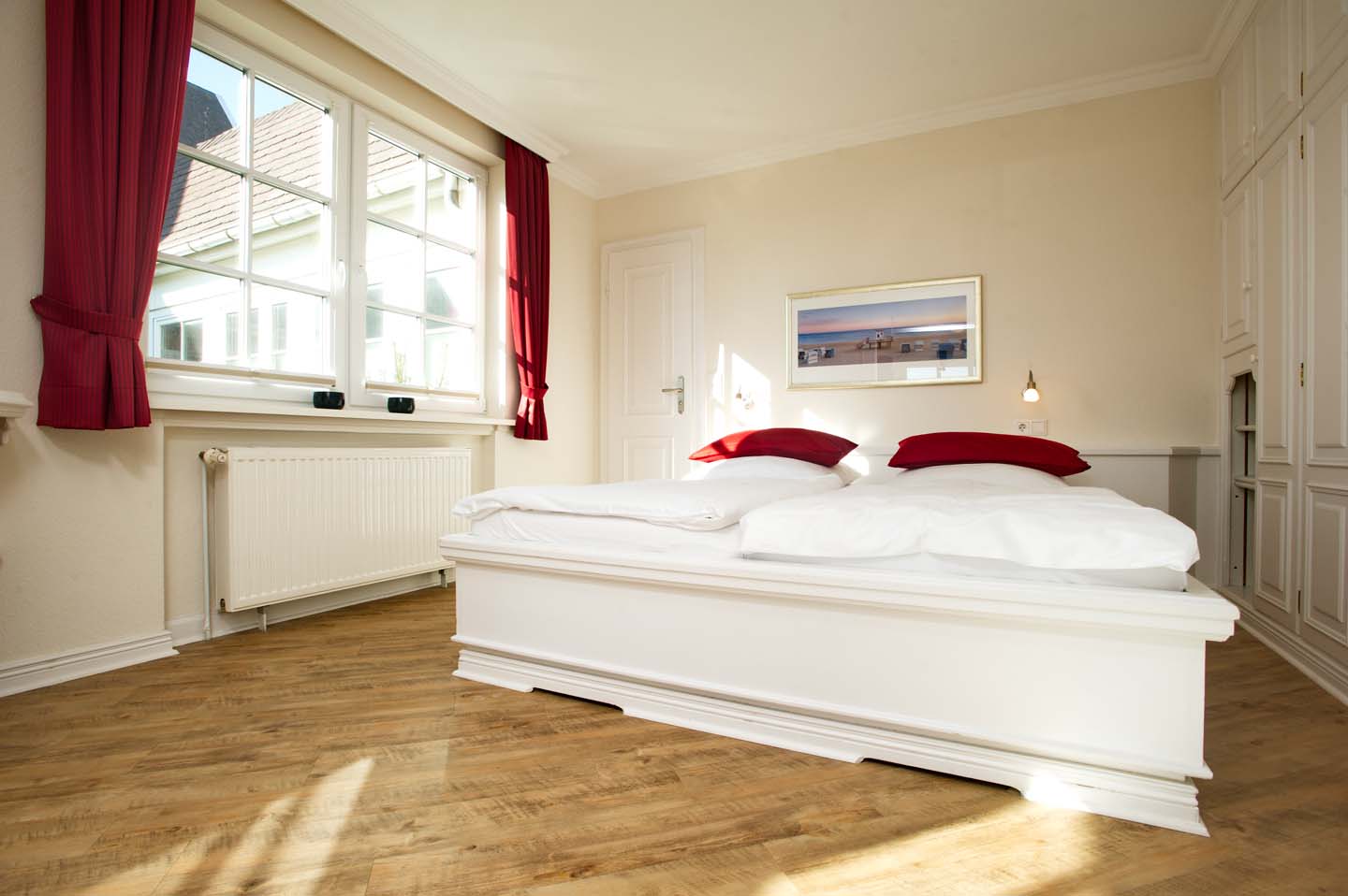 Eine helle und großzügige Ferienwohnung mit 70m². Das Appartement im Erdgeschoss bietet ein großes Wohnzimmer, eine separate Landhausküche samt Esstisch, 2 Schlafräume (1 x Doppelbett, 1 x 2 Einzelbetten) ein Duschbad mit WC sowie ein Gäste-WC. Im Preis enthalten sind Bettwäsche, Handtücher inkl. Strandtücher, WLAN sowie 4 e-Ladestationen direkt am Haus.